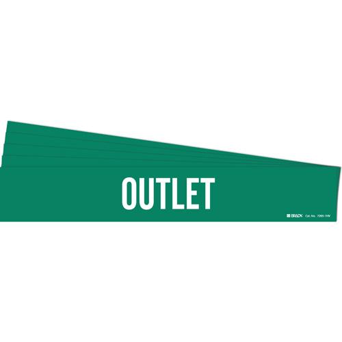 “Outlet” Pipe Marker – Vinyl, White on Green, 8″ – 20″, 4″, 24″, 3-1/2″, English, Self-Adhesive