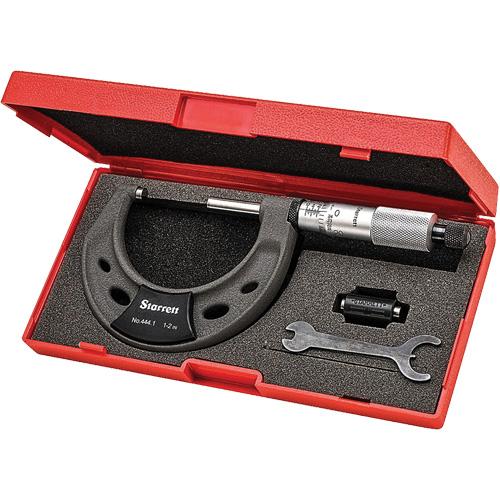 Outside Micrometer – 1″ – 2″, With Ratchet Stop, Satin Chrome, 0.0001″, Carbide, Flat