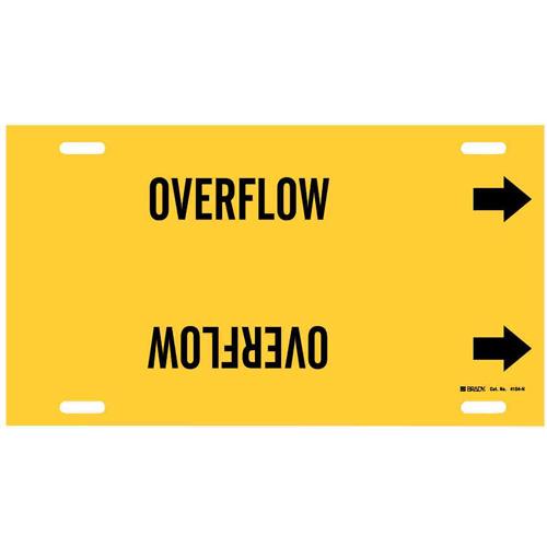 “Overflow” Pipe Marker – Plastic, Black on Yellow, 10″ – 15″, 10″, 32″, 3-1/2″, English, Strap-On