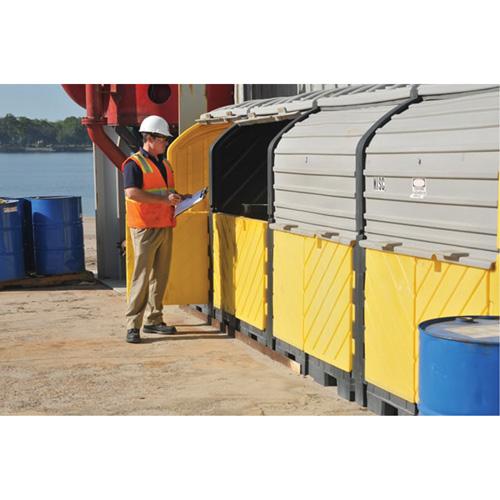 • Multiple 4-drum compartments offer flexible usage for a broad range of operations including storage of virgin chemicals, active hazardous waste collection, and storage of spill response supplies