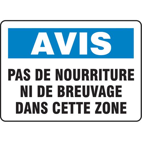 “Pas de nourriture ni de breuvage” Sign – Aluminum, Plastic, Vinyl, 10″, 14″, Bolt-On, French, Housekeeping and Hygiene, Avis; Pas De Nourriture Ni De Breuvage Dans Cette Zone, ‘-20°F to 140°F
