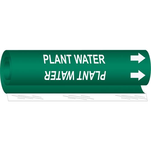 “Plant Water” Pipe Marker – Plastic, White on Green, 1/2″ – 1-3/8″, 5″, 8″, 1/2″, English, Wrap-Around