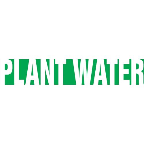 “Plant Water” Pipe Marker – Vinyl, White on Green, 3/4″ – 1-1/4″, 1″, 8″, 1/2″, English, Self-Adhesive, SSA