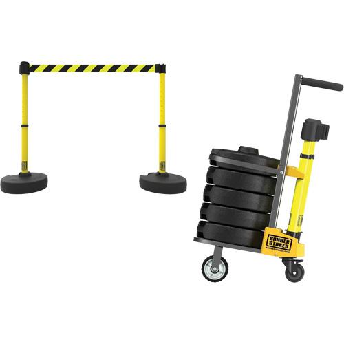 PLUS Barrier Post Cart Kit – Metal, Yellow, 42″, 75′, 22″-42″, YELLOW/BLACK DIAGONAL STRIPE, 15′
