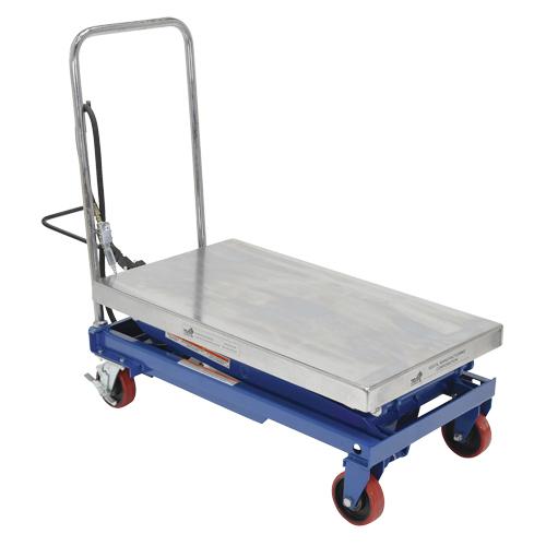 - Raise and lower material quickly and easily with hydraulic scissor carts