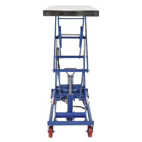 - Features two speed foot pump and hand held reciprocating air/oil power to manipulate platform height