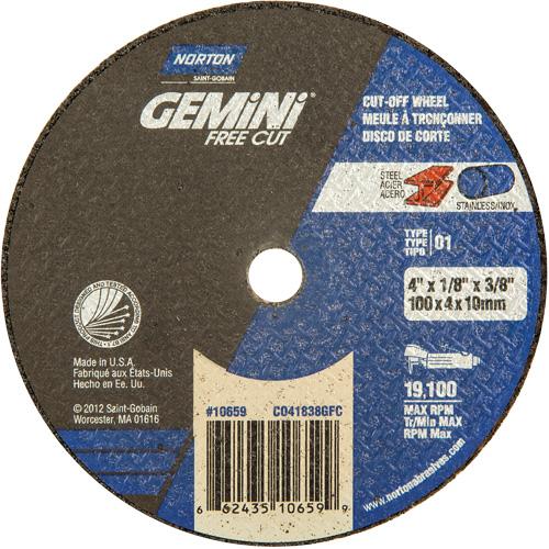 Portable Small Diameter Reinforced Cut-Off Wheels – Gemini® – 4″, 1/8″, 3/8″, 19100, 1, Aluminum Oxide