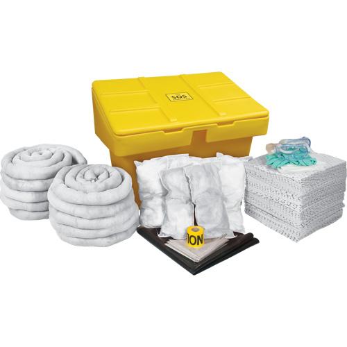 | Includes | 100 Sorbent Pads (15" x 17"); 10 Sorbent Socks (3" x 120"); 8 Sorbent Pillows (8" x 18"); 1 Drain Cover (36 " x 36"); 1 Caution Tape (3" x 300'); 2 Pairs Nitrile Gloves, XL (10); 2 Pairs Safety Goggles (One Size); 2 SMS Coveralls (X-Large); 10 Disposal Bags (26" x 36") |