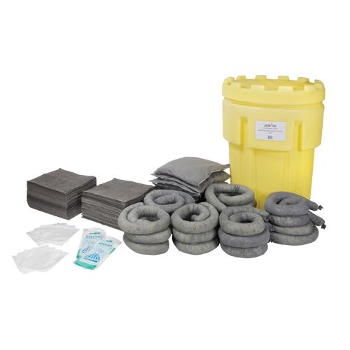 | Includes | Polyethylene Overpack Drum; 150 Sorbent pads (15" x 18"); 20 Sorbent socks (3" x 48"); 5 Sorbent Pillows (18" x 18"); 2 Pairs Nitrile Gloves XL (10); and 10 Disposal Bags (26" x 36") |
