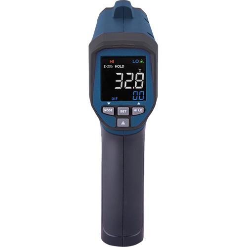 - Internal memory stores up to 5 pre-set high & low alarms and 5 emissivity settings