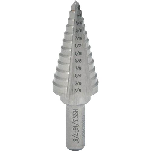 • Applications: Stepped cone design provides better control of hole sizes in materials up to 1/8" thick. One step drill does job of up to 13 different size drills. Holes are automatically deburred by cutting edge of next larger size. Ideal for sheet metal and hole-enlarging work.