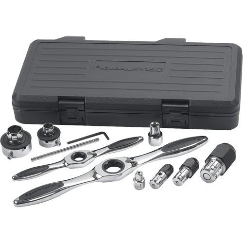 - Ratcheting T-handles wind dies with a 5° swing arc and have a reversing lever to eliminate hand-over-hand turning