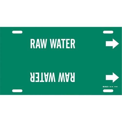 “Raw Water” Pipe Marker – Plastic, White on Green, 8″ – 9-7/8″, 10″, 24″, 2-1/2″, English, Strap-On