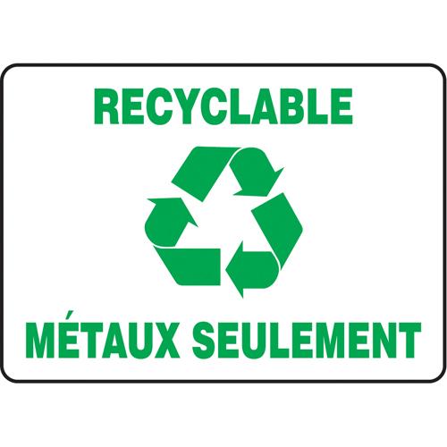 “Recyclable métaux seulement” Sign – Aluminum, Plastic, Vinyl, 10″, 14″, Bolt-On, French with Pictogram, Housekeeping and Hygiene, Recyclable Métaux Seulement w/Pictogram, ‘-20°F to 140°F