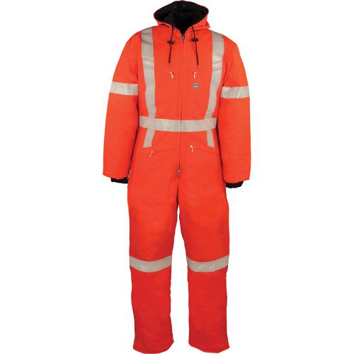 Reflective Insulated Coveralls – Orange, Silver, 2X-Large, 3X-Large, 4X-Large, 5X-Large, Polyester, Meets/Exceeds CSA Z96 Class 3 – Level 2, Regular, Polyester fiber fill insulation, Industrial wash