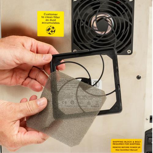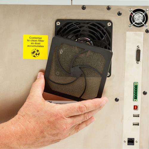 - Accumulated dust must be cleaned from the fan filter to maintain the printer's optimal working condition