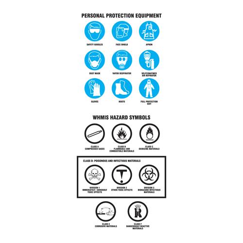 - Use WHMIS pictogram stickers to identify hazards and personal protection