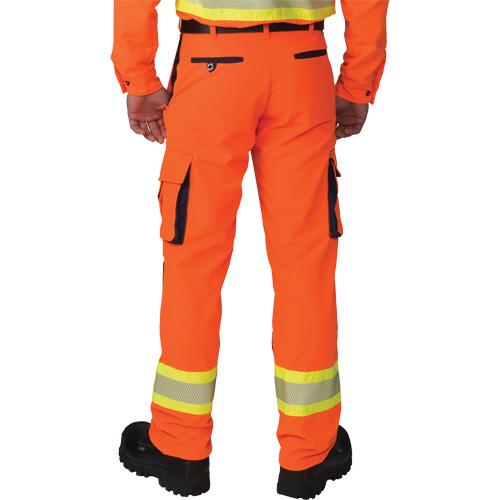 - 2" silver segmented, 3M™ Scotchlite™ reflective material #5530, heat transferred onto 4" fluorescent orange grosgrain material