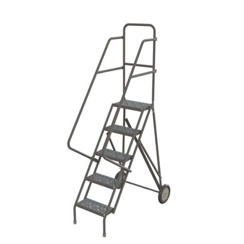 - Two 10" diameter semi-pneumatic wheels on rear of ladder, reinforced rubber tips on front legs to secure ladder during use