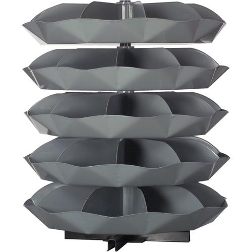- 44" diameter units have 5 compartments per shelf, with a 625 lb. capacity each shelf