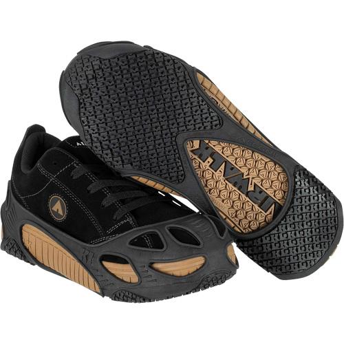 - Special tread pattern channels liquids away while increasing foot contact with the ground