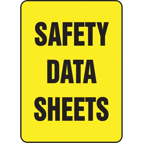 “Safety Data Sheets” Sign – Plastic, Aluminum, 10″, 14″, Bolt-On, English, Equipment, Black/Yellow