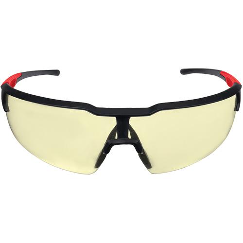 - The safety glasses feature comfortable temple arms designed for extended wear