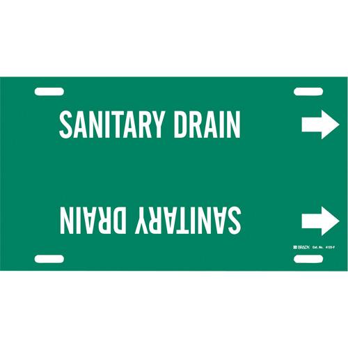 “Sanitary Drain” Pipe Marker – Plastic, White on Green, 6″ – 7-7/8″, 8″, 16″, 1-1/4″, English, Strap-On