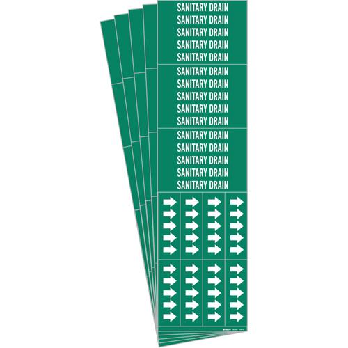 “Sanitary Drain” Pipe Markers – Vinyl, White on Green, 3/4″ – 2-3/8″, 1-1/8″, 7″, 3/4″, English, Self-Adhesive, 3