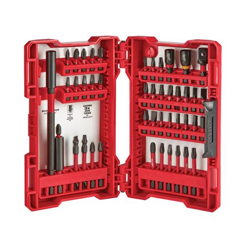 - Includes: (1) Compact magnetic bit holder, (1) 6" Magnetic bit holder, (1) 1/4" Nut driver, (1) 5/16" Nut driver, (1) 3/8" Socket adapter, (2) Double-ended power bits, (1) PH1 Insert bit, (3) PH2 Insert bits, (1) PR2 Insert bit, (1) PH3 Insert bit, (1) SQ1 Insert bit, (3) SQ2 Insert bits, (1) SQ3 Insert bit, (1) T10 Insert bit, (1) T15 Insert bit, (2) T20 Insert bits, (2) T25 Insert bits, (1) T27 Insert bit, (1) T30 Insert bit, (1) T40 Insert bit, (1) #8 Slotted bit, (2) #10 Slotted bits, (1) #12 Slotted bit, (1) 7/64" Hex bit, (1) 1/8" Hex bit, (1) 9/64" Hex bit, (1) 5/32" Hex bit, (1) 3/16" Hex bit, (1) 1/4" Hex bit, (2) PH2 Power bits, (1) PH3 Power bit, (2) SQ2 Power bits, (1) T20 Power bit, (2) T25 Power bits, (1) Carrying case