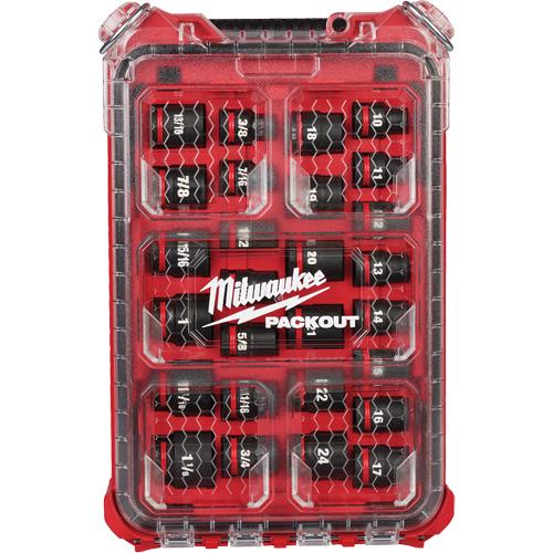 - Sets can be kept organized in the included MILWAUKEE® PACKOUT™ Compact Low-Profile Organizer with a clear top for easy identification of parts at a glance