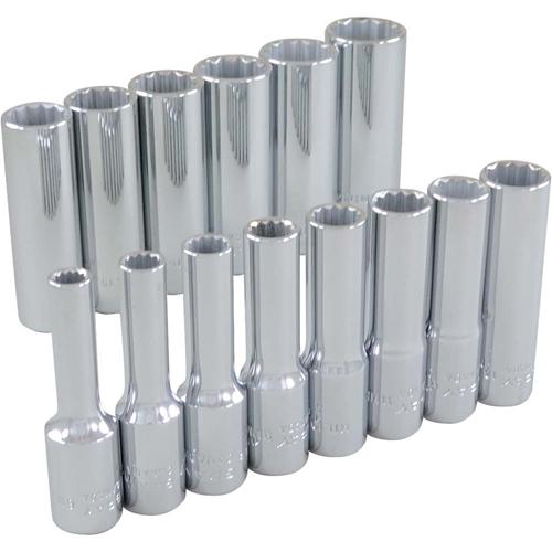Socket Set – 3/8″, Hand/Standard, Deep, 14, 12 Point, 12″ L x 2-3/4″ W x 1″ H, Limited Lifetime