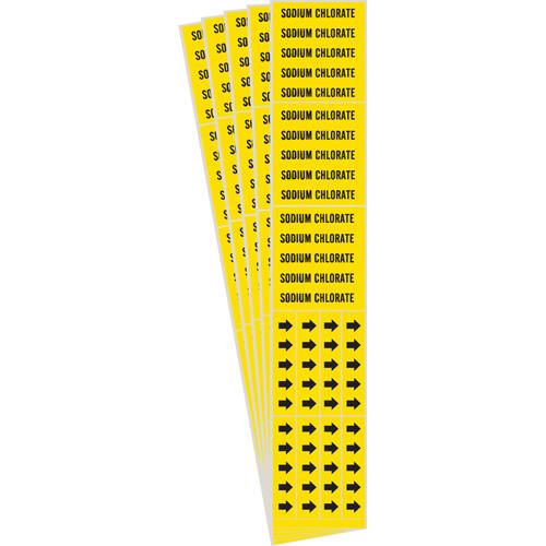 “Sodium Chlorate” Pipe Markers – Vinyl, Black on Yellow, 0″ – 3/4″, 2-1/4″, 2-3/4″, 1/2″, English, Self-Adhesive, 3