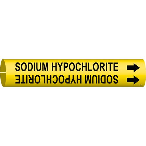 “Sodium Hypochlorite” Pipe Marker – Plastic, Black on Yellow, 4″ – 6″, 2-13/16″, 2-13/16″, 1-1/4″, English, Snap-On