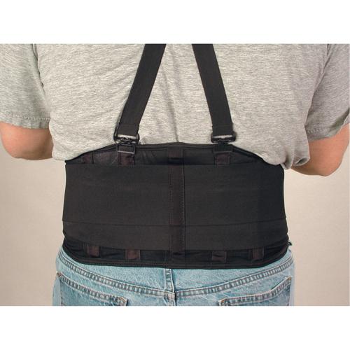 • The Spanbak® features a 9" wide back support and two-part closing design in breathable knit material backed with rubber grip webbing to help prevent ride-up. Comes with snap-off suspenders. Colour : Black