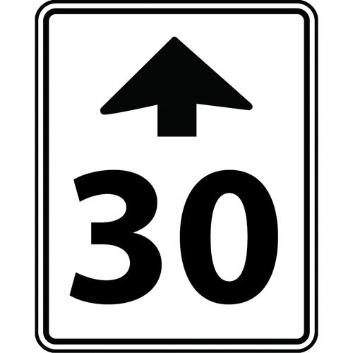 Speed Limit Ahead Sign – Aluminum, 30″, 24″, Bolt-On, Bilingual with Pictogram, Traffic, 30 w/Upwards Arrow