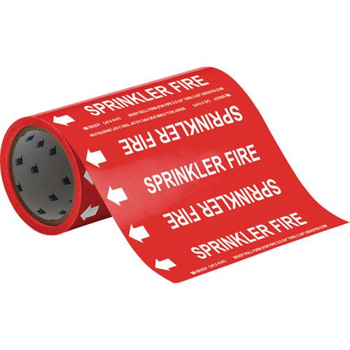 “Sprinkler Fire” Roll Form Pipe Markers – Vinyl, White on Red, 0″ – 2″, Cuttable, 8″, 3/4″, English, Self-Adhesive, 360″