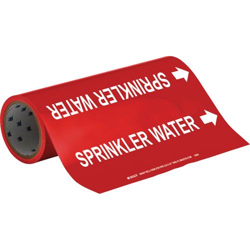 “Sprinkler Water” Roll Form Pipe Markers – Vinyl, White on Red, 2-1/2″ – 6″, Cuttable, 12″, 3/4″, English, Self-Adhesive, 360″