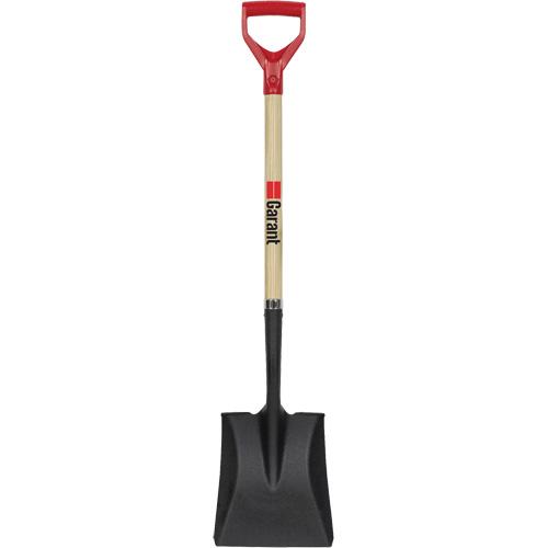 - This square point D-grip shovel has a 9-1/2 x 9-1/2-inch blade made of tempered steel, with a 43-1/2-inch wood handle
