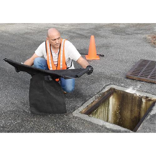 • A catch basin insert that adjusts to the size of the storm drain