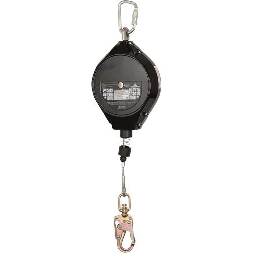 - The attachment points include a swivel eye on housing and double action locking snap hooks with fall indicator to connect to the worker’s fall arrest D-ring
