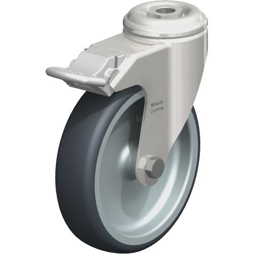 Stainless Steel Thermoplastic Elastomer Caster – 5″ (127 mm), 265 lbs. (120 kg.), Thermoplastic Rubber-Elastomer, Swivel with Brake, Stainless Steel, 1-1/4″ (31.8 mm), Bolt Hole Fitting, 1/2″ (13 mm), 0″ (0 mm)