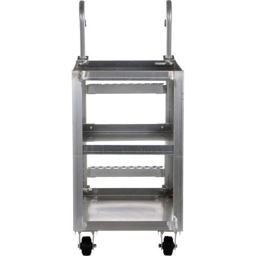 - Convenient spring loaded steel step ladder holds the cart securely in place while a person is standing on the ladder
