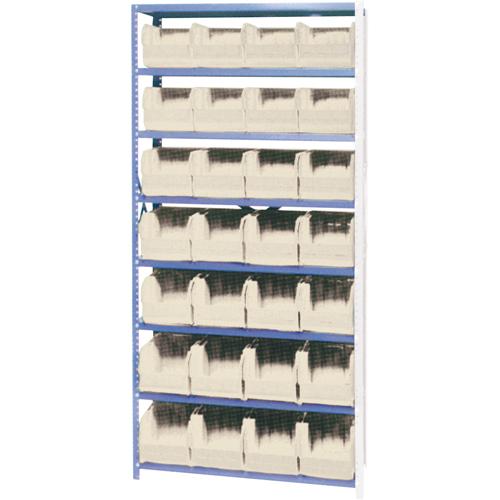 Storage Shelf Unit with Stacking Bins – Add-On, 8, 800 lbs., Steel, 36″, 12″, 76″, Boltless, Open, 28, Ivory, 8-1/4″ W x 10-3/4″ D x 7″ H, Grey Enamel