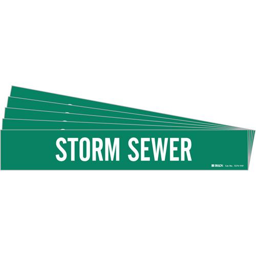 “Storm Sewer” Pipe Marker – Vinyl, White on Green, 8″ – 20″, 4″, 24″, 3-1/2″, English, Self-Adhesive