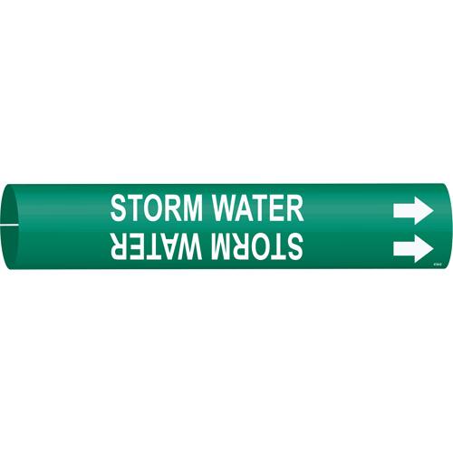 “Storm Water” Pipe Marker – Plastic, White on Green, 4″ – 6″, 2-13/16″, 2-13/16″, 1-1/4″, English, Snap-On