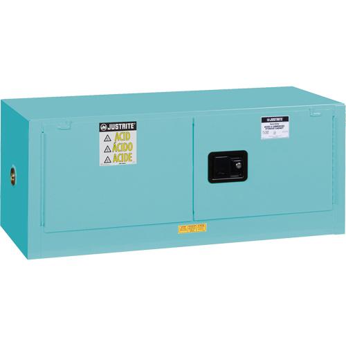 - Justrite® blue steel Piggyback safety cabinets for corrosives have the same quality safety features as the cabinets for flammables