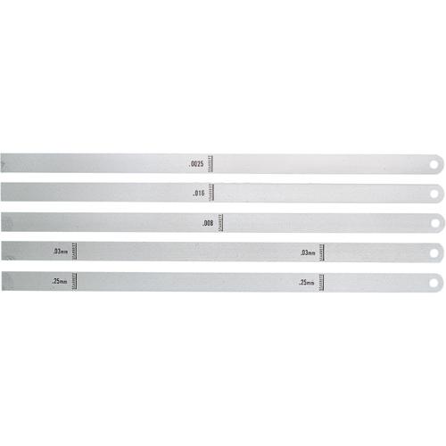 - Inch sizes are 12" long, 1/2" wide and furnished in 33 different thicknesses ranging from .0005-.030"