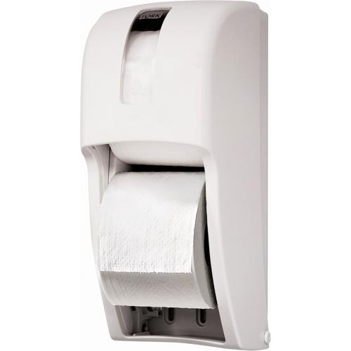 • Tork(R) bath tissue dispenser holds 2 high capacity rolls for longer service opportunities