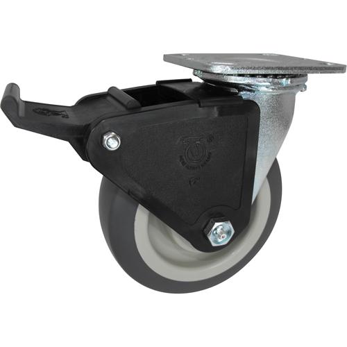 - Simple press of the foot locks both wheel and swivel in any position